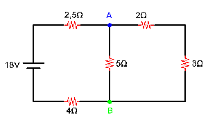 Para o circuito elétrico da figura abaixo, qual o valor da diferença de potencial entre os pontos A e B?