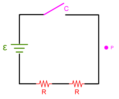 Uma bateria ideal, capaz de manter entre seus terminais uma diferença de potencial fixa \(V\), é ligada a uma resistência \(R\). Nesta situação, uma potência \(P_0\) é dissipada na resistência. Se uma segunda resistência, de mesmo valor, for ligada em série com a primeira, a potência dissipada em cada uma das resistências será