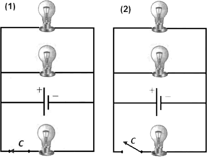 Considere o circuito formado por três lâmpadas idênticas ligadas em paralelo à bateria, conforme representa a figura (1).