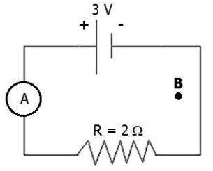 Um campo magnético uniforme \( B \) atravessa perpendicularmente o plano do circuito representado abaixo, direcionado para fora desta página. O fluxo desse campo através do circuito aumenta à taxa de \( 1 \, \text{Wb/s} \).