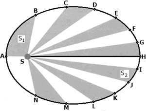- Enunciado: O segmento de reta que une cada planeta ao Sol varre áreas iguais em tempos iguais.