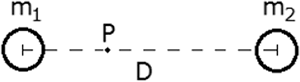 O diagrama da figura 1, abaixo, representa duas pequenas esferas, separadas por uma certa distância. As setas representam as forças gravitacionais que as esferas exercem entre si.