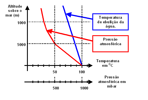 da pressão atmosférica e da temperatura de ebulição da água, ambas em função da