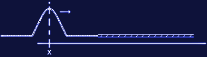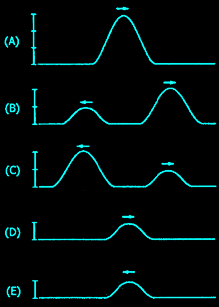 Uma corda é composta de dois segmentos de densidades de massa bem distintas. Um pulso é criado no segmento de menor densidade e se propaga em direção à junção entre os segmentos, conforme representa a figura abaixo.