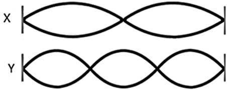 Considere \( f_X \) e \( f_Y \), respectivamente, as frequências das ondas nas cordas X e Y.